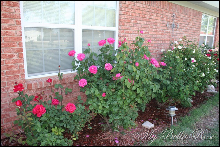 I have not been able to post a lot this week. I’ve been busy tending to my babies outside…. lol what you call garden. :) I’d like to share some of my roses. The fragrance of roses is taking over at my house. I love it. As you walk by them, you get a whiff of the scent. There is nothing like it. :)