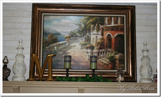 ‘This is a “before” picture of the fireplace. While I liked the mocha color, I didn’t think it looked good with the newly painted walls. So out came the paintbrush and I proceeded to paint it! hee hee! :)